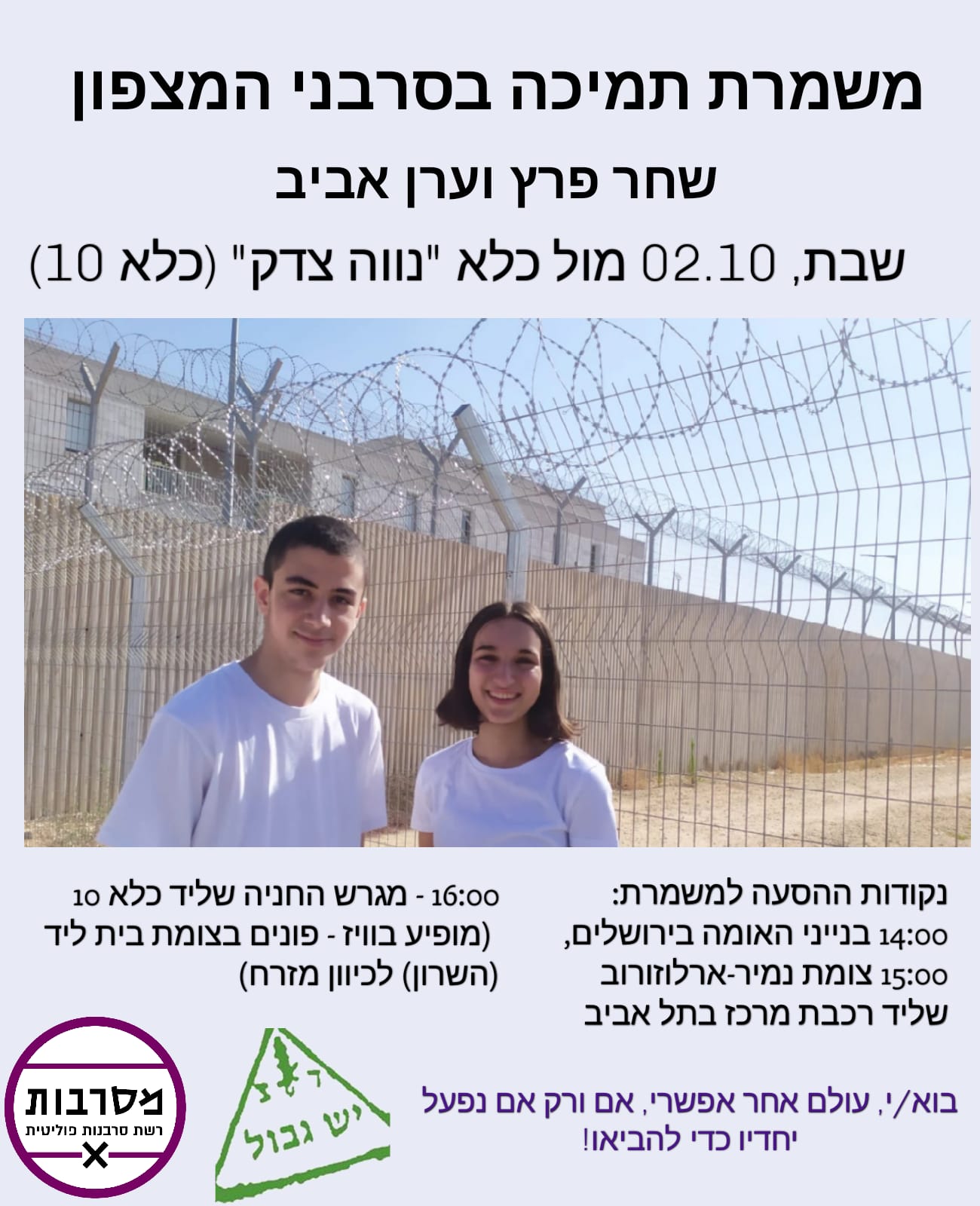 הזמנה למשמרת תמיכה בערן אביב ושחר פרץ (2021)